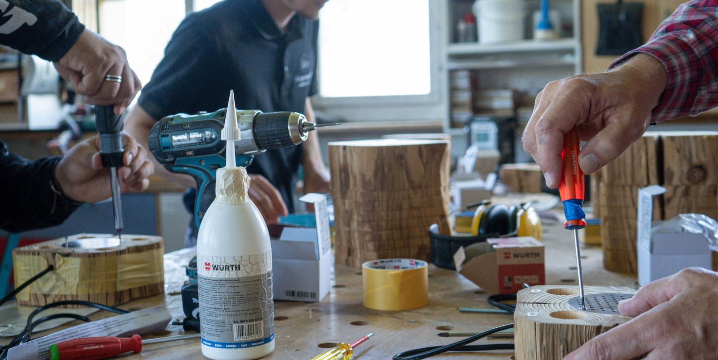 Die „Stratum S 300“ ist die beliebteste Leuchte im exklusiven Beleuchtungs-Sortiment von kln.swiss. Sie ist eine wunderbare Dekoleuchte mit einzigartigem Ambientelicht und eignet sich beispielsweise ideal als Nachttischlampe. In diesem Holz Workshop in der Nähe von Bern baust du dir dieses beliebte Kunstwerk selbst! Schritt für Schritt helfen wir dir bei der Herstellung von deinem persönlichen Lampen Unikat. In diesem Schreinerkurs sind keinerlei Vorkenntnisse notwendig! Im Anschluss an den Workshop gibt es noch einen kleinen Snack und ein erfrischendes Getränk, gleichzeitig hast du die Möglichkeit bei Interesse noch etwas mehr über unsere junge Firma zu erfahren.